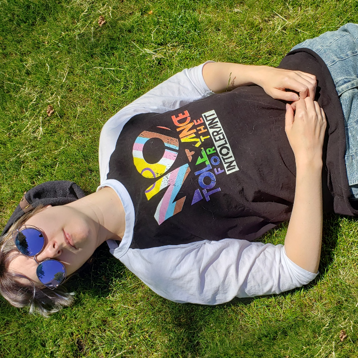It was PRIDE 2022 when I had the idea to put the PRIDE flag in the words. I wanted to be able to wear it so it would be easier for me to filter out people who could not tolerate me, so I wouldn't waist my time.