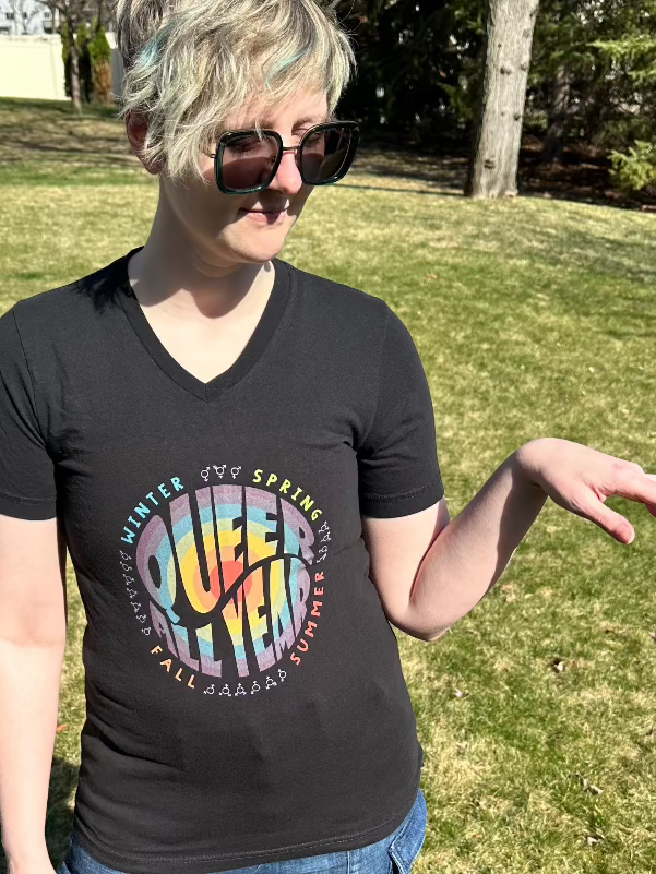 I wanted to make something with a 70s feel that was a good reminder that being queer isn't limited to the month of June, it is year round. Just like people are het all year round.